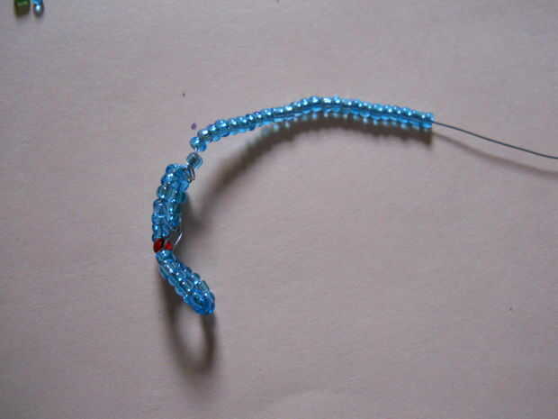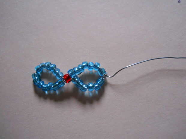 luego pasar el extremo libre del alambre centro de otro bucle (7 bolas)