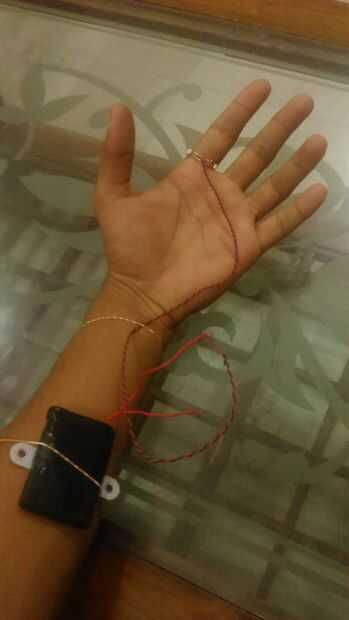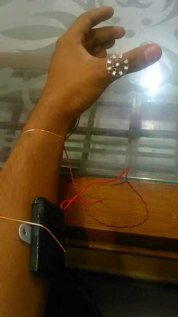 Poner en el dedo y utilizar algunas ligas para ocultar el cable o poner tus mangas