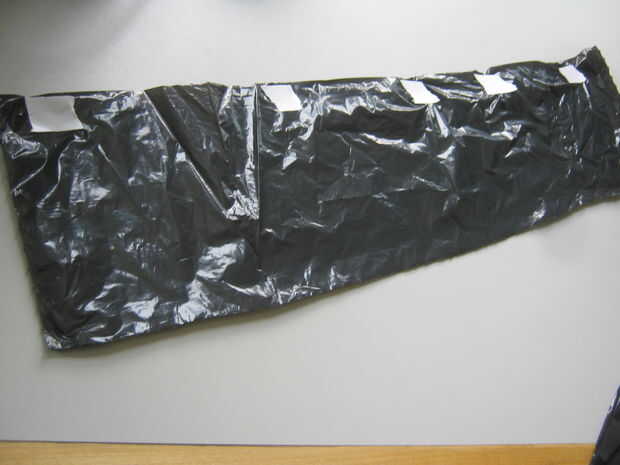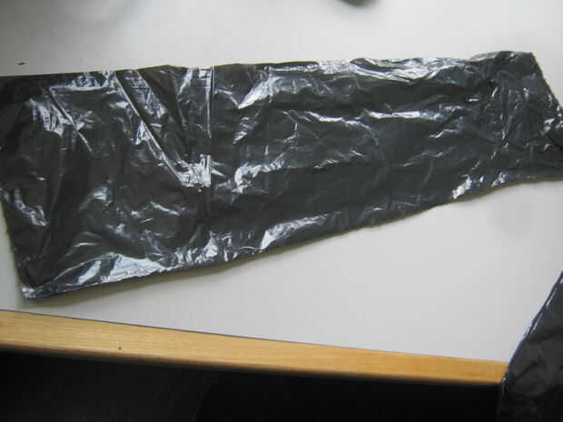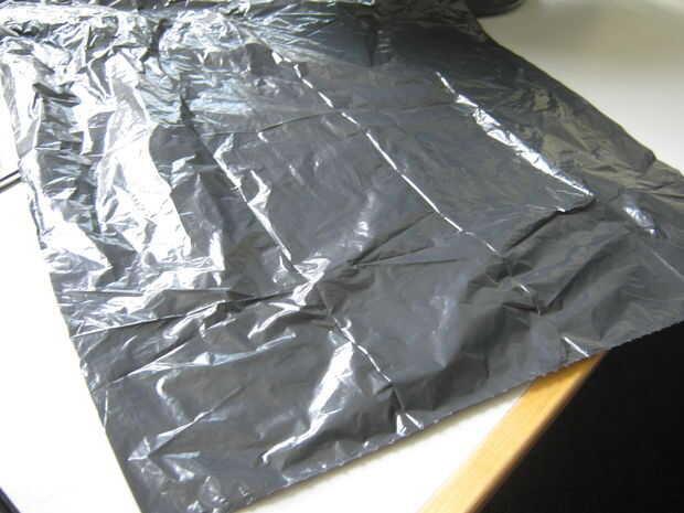 Paso 1: tome una bolsa de basura, doble cinta adhesiva y tijeras.  Corte la basura tiras, colocar cinta de doble cara en la bolsa de basura. Pelar el pegajoso y pegarlos en su estructura base.