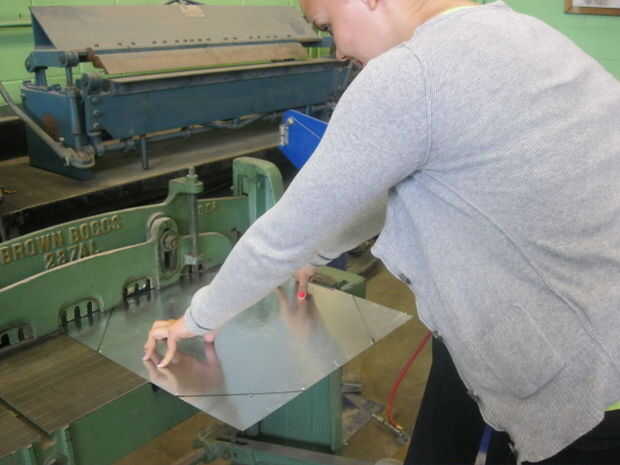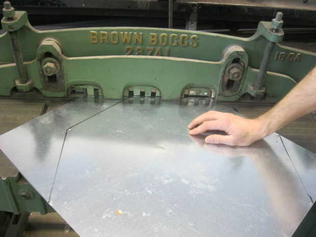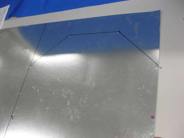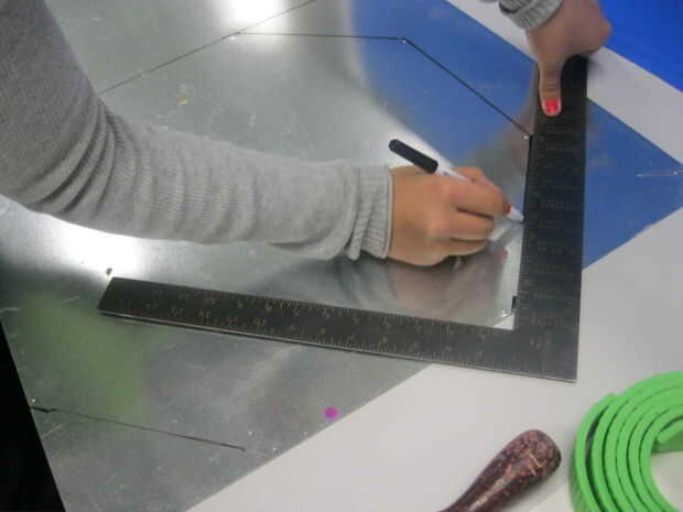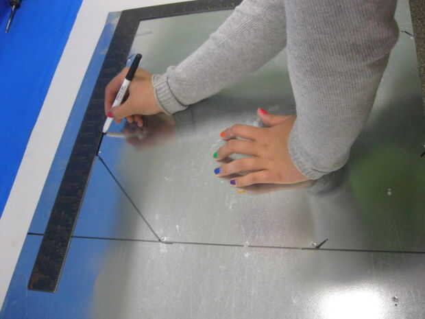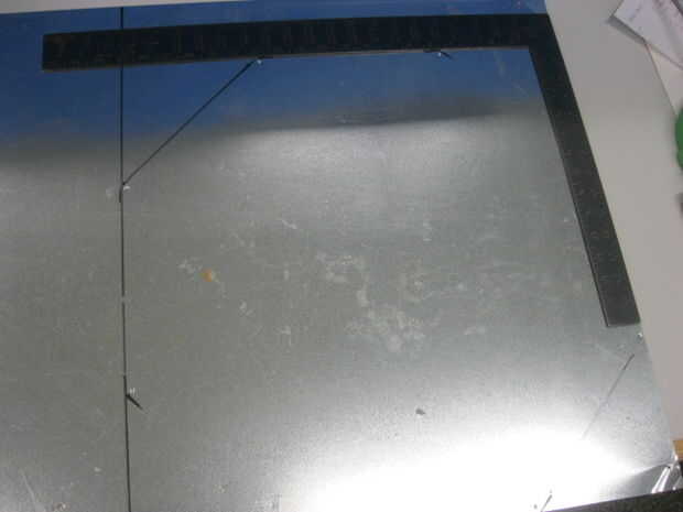 Step2: Tomar el marcador y poner en el agujero uso un cuadrado para hacer incluso las líneas con el marcador después de todo te aparece puede que tome su hoja de metal. y cortar en la máquina.