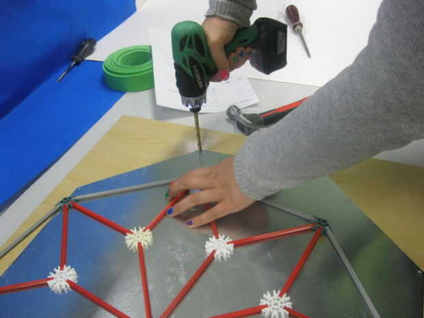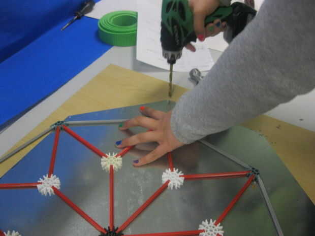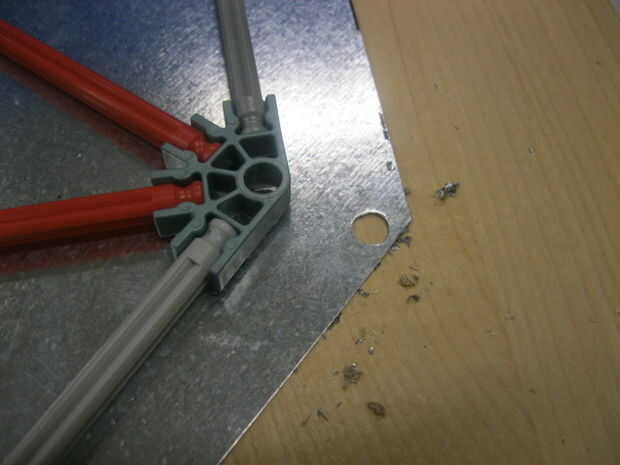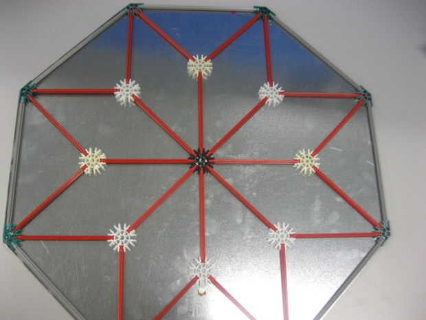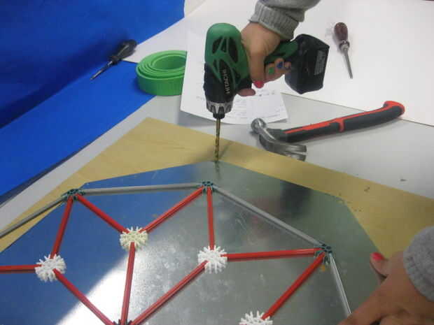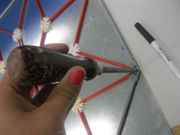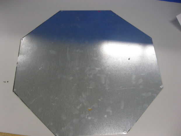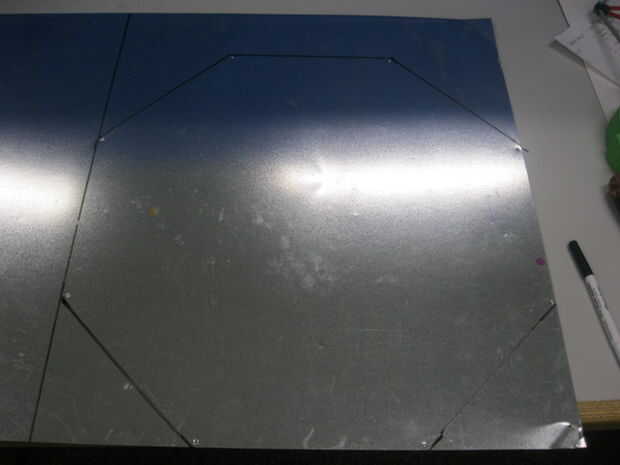 Paso 3: Coloque el octógono de metal y coloque en un pedazo de madera. Coger el taladro y taladro donde los guiones de su punzón es .esta permite la chapa que se colocará sobre la estructura.