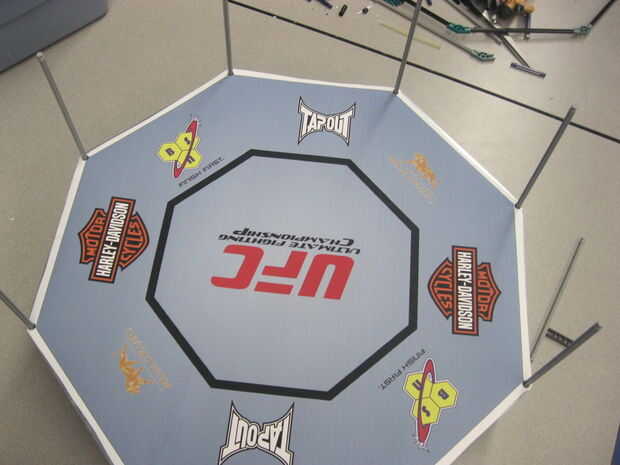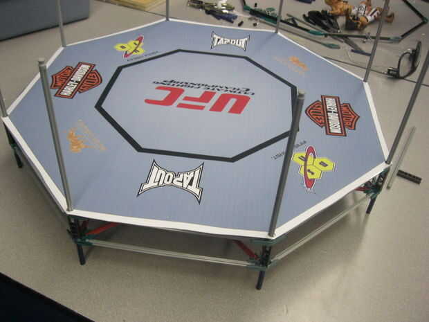 Step2: Entonces pone su chapa en la estructura colocando los postes grises en los agujeros de la hoja.
