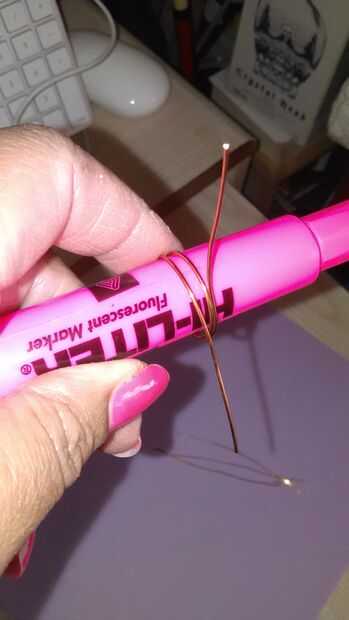 En vez de un mandril anillo, utilicé un highliter para envolver mi anillo. Me aseguré de dejar una pulgada en cada lado de las antenas.