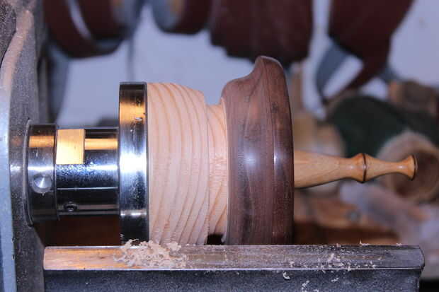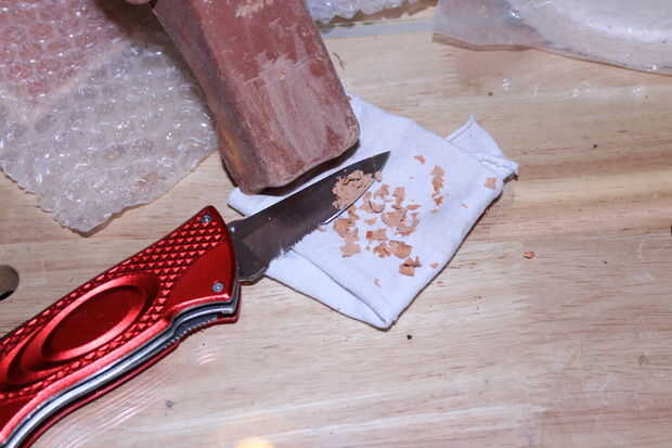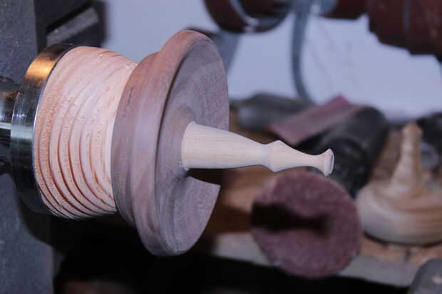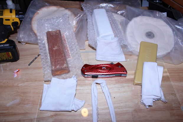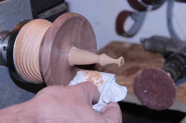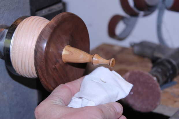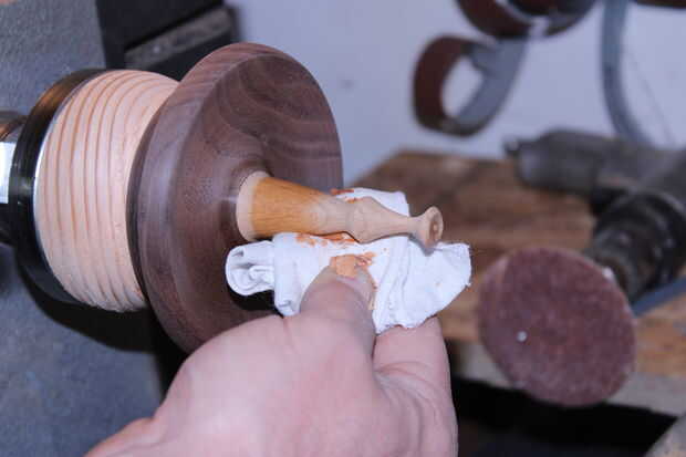 Aprendí una técnica para pulir bolígrafos y lápices que funciona bien. Usar el sistema de tres fases, sin las ruedas. Raspe el polvo de cada piedra en un trapo de algodón. GUANTES, trapos, largo cabello, mangas largas, lazos ETC. no pertenecen cerca de un torno *** así que use algún sentido común y precaución con el trapo de algodón. la tela se dobla en acerca de 1 "X 1" cuadrado 3 4 capas de espesor. raspar las barras del compuesto que pulimenta con un cuchillo directamente en el trapo y luego cuidadosamente traer el trapo a la pieza de trabajo mientras que es spinning y buff lejos. Vaya a través de cada una de las tres etapas lentamente y con cuidado. Añadí una pequeña marca de quemadura alrededor de los puntos fuertes del remate por envolver un paño alrededor de un pequeño bloque de madera y sujete a los bordes mientras el torno gira a alta RPM. Sólo tarda unos 5 segundos y creo que añade un toque agradable.
