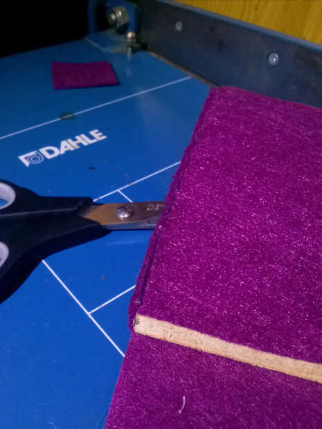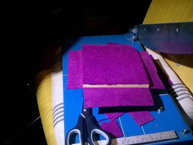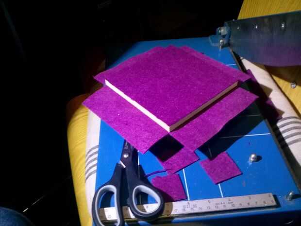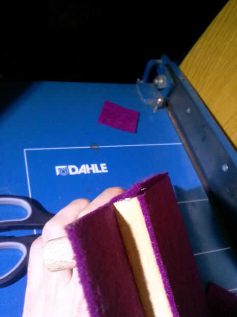 Recorte el fondo fieltro tamaño y cortar las esquinas de la tapa de fieltro.