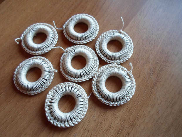 Al final se crochet todo encuentro! ;-)Entre las cosas de mi madre encontré una bolsa con anillas de metal. Yo les he ganchillo como se puede leer en mi post anterior aquí.Paso 1: Los anillos deben ser un poco más grandes que el tamaño de su anillo n