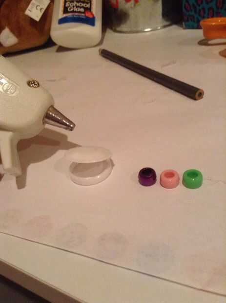 u primera pone el sellador de la do sobre una superficie plana, luego puede caliente pegamento (que recomiendo porque tiende a deslizarse y salirse muy fácilmente con cola blanca de Elmer normal) el grano cualquier ropa que desee en la parte superior de la espera del anillo 2-3 minutos para que completamente seco. Usted puede incluso hacer sus propios diseños!