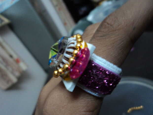 Anillo de abalorios - anillo hecho a mano con cristales de Swarovski y Miyuki perlas y rocallas