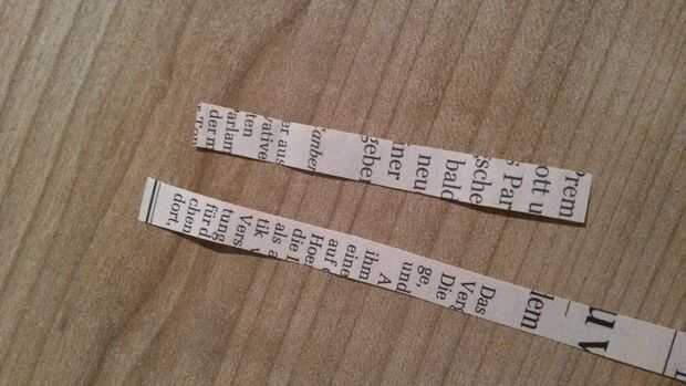 Tomar algún artículo al azar de un periódico y cortar algunas rayas ligeramente más ancho que el anillo debe ser el final.