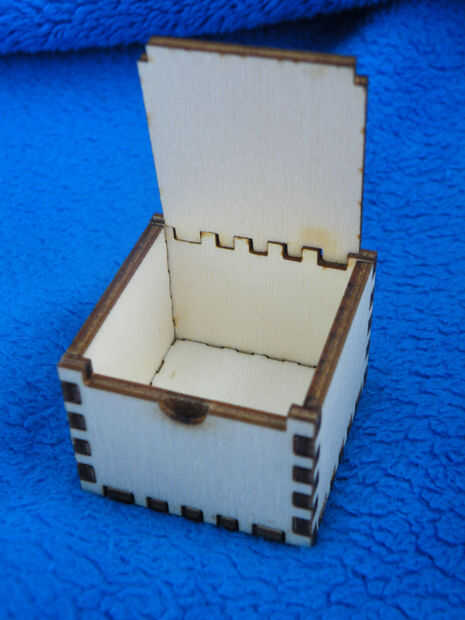 No tengo ninguna cajas de joyería, pero tengo un cortador láser y cualquiera con un cortador láser también tiene algunas pulgadas cuadradas de madera de desecho o de acrílico. Rápidamente armé este diseño, y estoy poniendo "ahí fuera" para todos los demás a hacer lo mismo.
