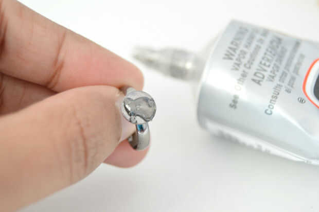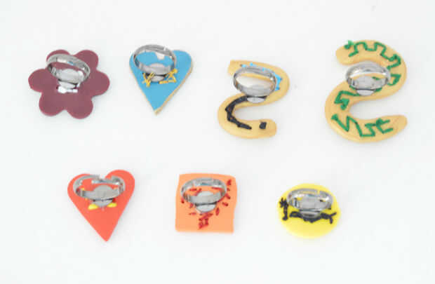 Aplicar un poco de pegamento en el ring en blanco y fijarla en el centro de la espalda de la arcilla. Deje que se seque y Voila!! Su anillo está listo para usar.