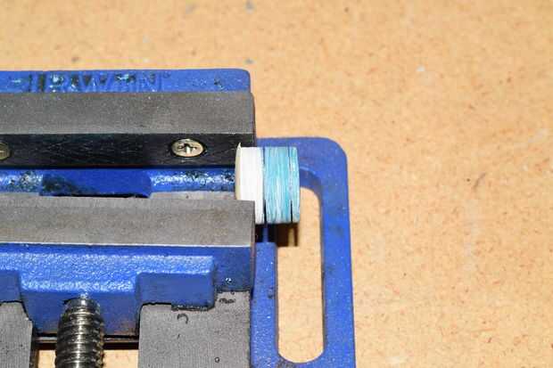 Coloque el blanco en un tornillo y acabar el corte a través el espacio en blanco.