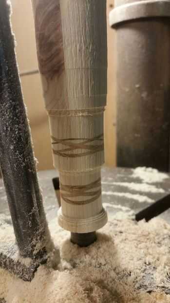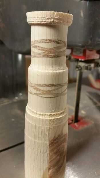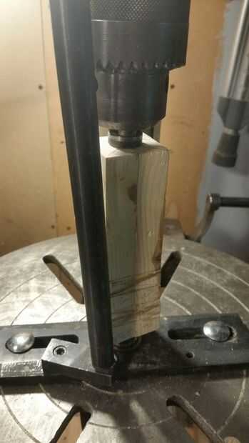 Ya que me permitió comprar un juguete nuevo, me refiero a "pieza necesaria del equipo" - pensé que mejor usarlo. Así que aquí es un accesorio del torno para mi taladro. Foto 1 es el bloque en la prensa del taladro, Foto 2 el acabado en blanco, y pic 3 he hojeado para perforar los agujeros. Es necesario tener 1 anillo con un ID de 3/4" y el otro con ID 5/8" y quería que el espesor de los anillos de acabado para ser ~3/16 "gruesa por lo que el más grande tiene un acabado áspero OD de 1 1/8" y el más pequeño un áspero final OD ~ 1 1/16 ". En este punto arena los espacios en blanco a un grano 400 esperando que no tengo demasiado en el exterior del borde otra vez. Puesto que ya tenía el centro marcado, utilicé brocas de pala y perforó un agujero de 1/2" abajo apenas más profundo que el anillo más pequeño y cortarlo. Luego volvió a la prensa taladro perfore un orificio de 5/8" en el más grande y luego cortarlo.