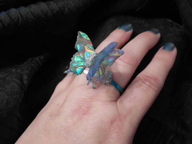 Empecé a hacer estos anillos de desgaste para trabajar hace años y bueno, ahora quiero hacerlos para mi nieta, los materiales han mejorado con el tiempo y con más frenesí de arte de uñas, resulta más fácil y los golpes de papel han llegado a lo largo de camino así. Quería usar mi material fusible de película de Angelina, así que mi mariposa tendría una apariencia de vidrio dicroico.