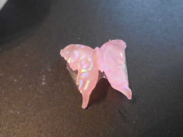 Coloque la hoja hacia abajo y coloque una toalla de papel al lado. Poner la mariposa en la hoja, esto evita se pegue. Al abrir el producto de acrílico de leer las instrucciones, el personal de Sally es muy útil para hacer las cosas juntos.
