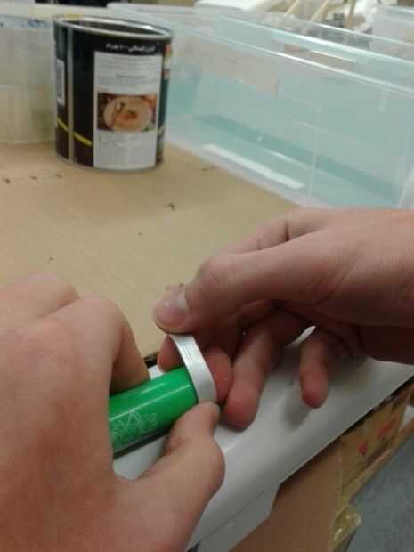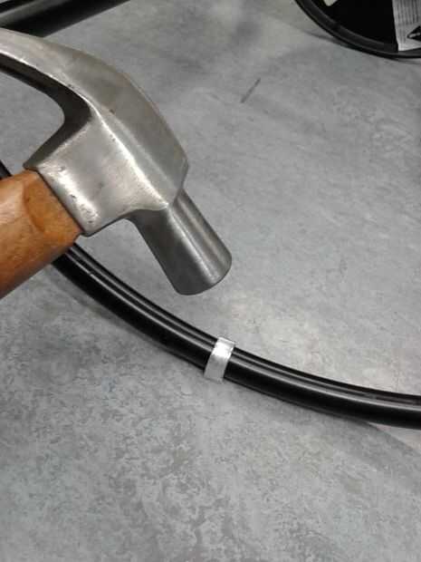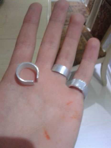 Para obtener las tiras en forma de anillo, sólo tienes un martillo, encontraron un cilindro de aproximadamente el diámetro del tamaño de mi anillo y comenzó a martillar. Es más fácil conseguir un anillo más redondo si lo haces a mano (el aluminio es blando en tiras delgadas) pero martilleo es también una posibilidad si quiere. Primero usaba una pierna de heces, pero luego me di cuenta de sería capaz de bajar del ring, así que miró a su alrededor y encontré un marcador que fue justo el diámetro que necesitaba para mi anillo. Yo hice a mano y tiene una bonita forma redonda y ya era bastante cómodo de llevar (aparte de todos los arañazos que me dio el corte de aluminio).