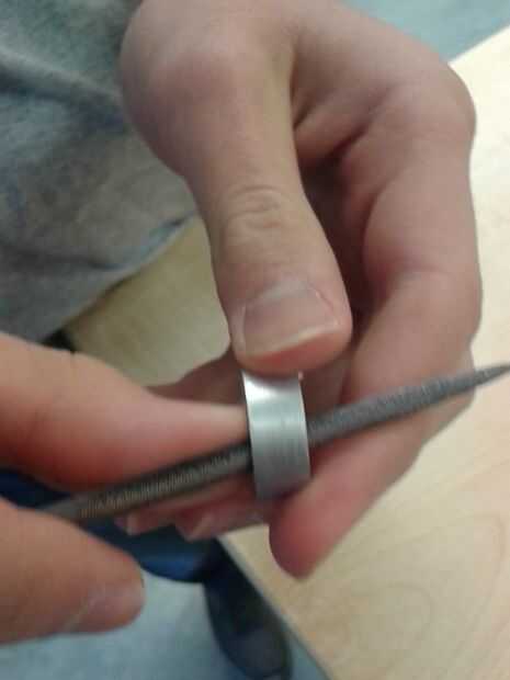Ahora que tienes todos tus anillos en forma de, usted querrá empezar archivando y suavizar los bordes. Acababa de usar un kit de presentación de precisión, pero los archivos roundish funcionaría. Después de presentar hacia abajo, puede que desee a papel de lija lo que puede reflejar como un diamante (Rihanna realmente necesita saber la diferencia entre brillo y reflejo). No vamos a pulirlo completamente ahora, a menos que no quieras lo Anodice. En ese caso, hacer lo que quieras para tu toque personal final.