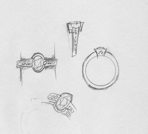 Primero tener una idea de lo que el cliente le gusta, bosquejo de y discutir lo que tienen en mente, veo qué gemas o diamantes tienen que trabajar con.