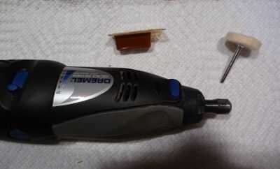 Para el pulido final en el anillo, utilicé una herramienta Dremel y algunos joyeros rouge. Si tienes el kit Dremel probablemente tiene algunas ruedas de pulido y una extraña sustancia roja pequeña en un envase de plástico. Si no tienes un Dremel u otra herramienta similar, puede utilizar un taladro de mano con una rueda que pulimenta, pero tendrá que conseguir alguna sustancia pulido, así que volver a la tienda de la caja grande.