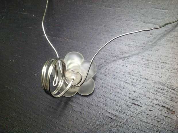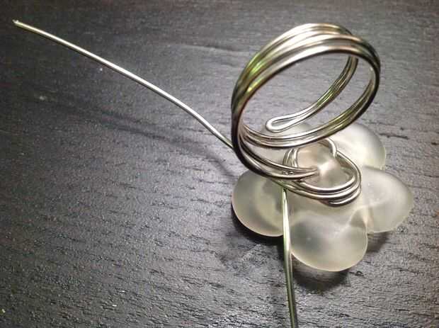 Utilizando las imágenes como guía, envuelva el cable alrededor de la perilla del agujero de botón. Asegúrese de que los cables están envolviendo en direcciones opuestas. Envuélvalos apretadamente como sea posible. Tres o cuatro vueltas deben hacerlo.