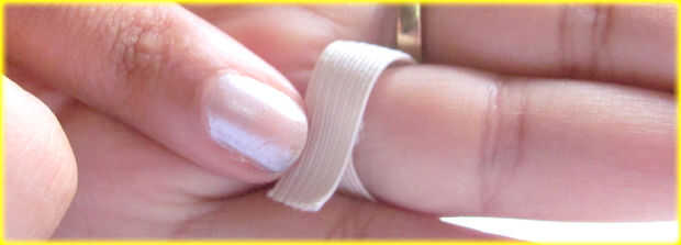 Tomar una banda elástica gruesa, medir el tamaño de la figura y cortar.