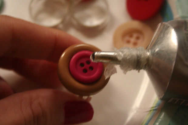 Este es un proyecto muy sencillo que no requiere pasos adicionales. Pegar los botones en sus espacios en blanco del anillo. Se pueden en capas un botón grande y un pequeño botón en la parte superior para un pop extra de color. O puede utilizar cualquier vintage estilo botones que tengas ahí en tu casa.