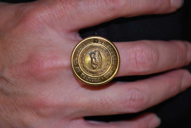 un día me preguntaba a través de Potobello Market en Londres. Me encontré con este stand que vende estos hermosos botones. Las mujeres ejecutan el stand recoge recopila botones militar británico de WWII. Ella encuentra militares chaquetas en ventas y se quita los botones y las vende. Ella también tiene griego unos y vidrio que. Compré a algunos griegos que también los botones militares. Conseguimos unos con la capa de brazos real y uno con un emperador griego. Cuando los recibí me empezando qué debo hacer con ellos. Así que decidí hacer anillos.