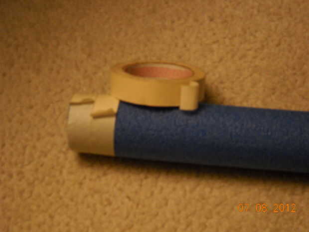 Mide una pulgada o dos de un extremo y envuelva cinta adhesiva alrededor de los tallarines de la piscina como una guía para el corte. Hace agradable y cuadrados que circunda los tallarines. (Digamos 3 veces rápido!)
