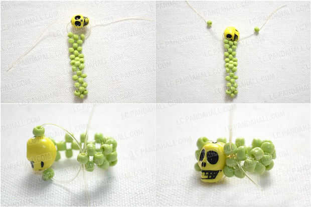 3 cruzar la cuerda elástica a través de la primera de semillas de bolas del otro extremo;