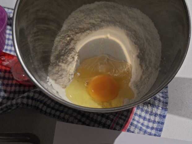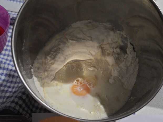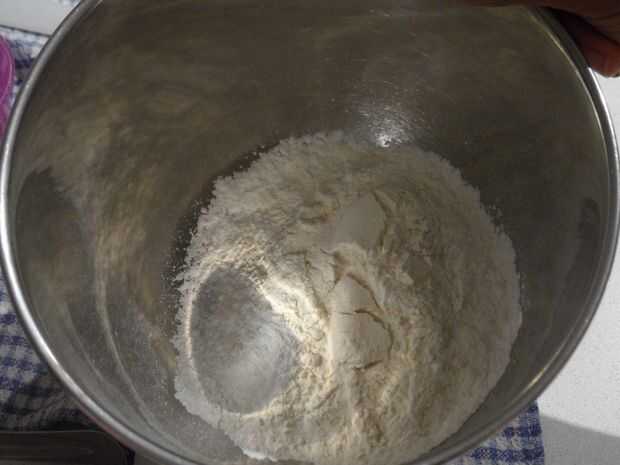 1. con la harina sobrante del paso 1, mezclar el huevo, ajo en polvo, condimentos, almidón de maíz y 6 cucharadas de leche.
