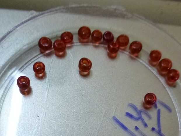 Necesita unas trece piezas de este tamaño para hacer un anillo. Los números pueden variar con respecto al tamaño de las piezas de joyería, así como el tamaño de los dedos. Estas piezas tienen orificios en ambos extremos para pasar los alambres a través.
