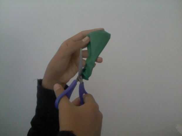 Estirar el globo como si usted está sobre a soplarlo, luego córtalo por la mitad simétricamente.