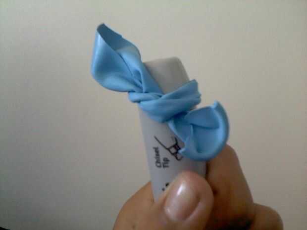 Paso 1: suministros. Se necesita:-conducto de cinta-ruler(optional)-tijeras - x-acto knife(optional)-horquilla, venda principal o un pasador.Paso 2: Cortar dos trozos de cinta del tamaño que desee su arco.Paso 3:Paso 4: Armar Tomar una pieza y coloqu