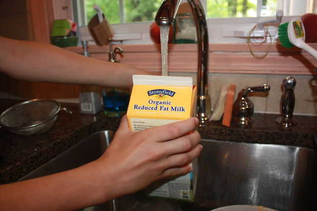 Espere hasta que el agua es agradable y caliente, esto se hacer un anillo de humo más claro y definido, así como darle más tiempo para jugar. Llenar la botella de leche lo suficiente como para que puede ser colocado sobre su lado con la tapa hacia arriba sin el agua se derrame hacia fuera.
