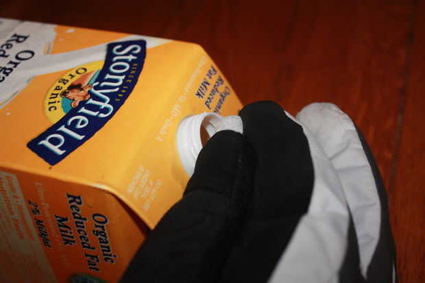 Añadir de cinco a siete piezas de hielo seco en la botella con agua caliente. Añadir lo suficiente para que el humo es espeso y blanco, pero lo suficiente delgada para que todavía pueden formar anillos de humo.
