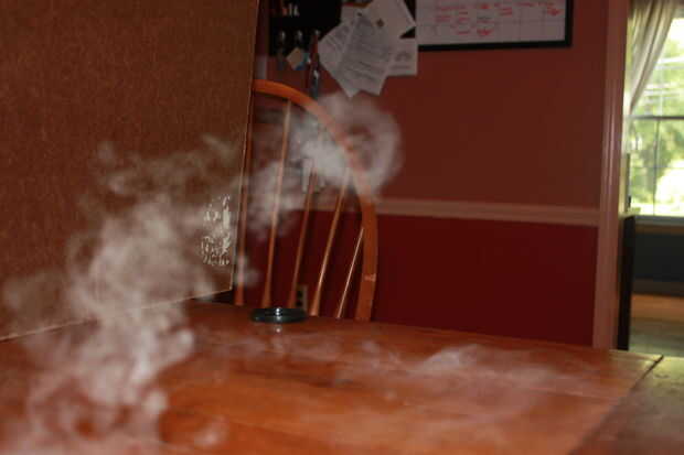 La botella también se puede colocar vertical para hacer los anillos de humo ir más alto.