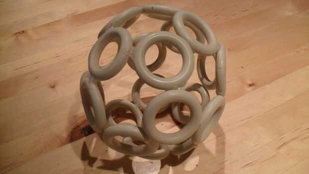 Fue construido alrededor de un icosaedro de papel que tenía hecho de presiously y entonces era caliente-gloued todos juntos.