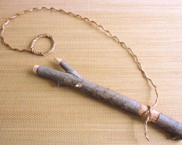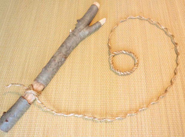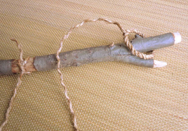Hacer un anillo con un largo extremo del filamento. Conecte el extremo del filamento a la base de un palo para crear un juego toss ring.