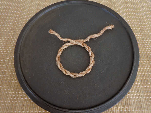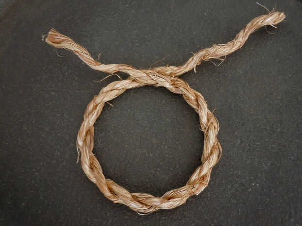 Continuar envolviendo cada extremo de la hebra a través del agujero del centro.