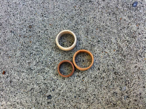 No había mucha información por ahí acerca de cómo exactamente hacer los anillos. Después de una gran cantidad de experimentación, he venido para arriba con un método que funciona para nosotros. Nosotros no hacemos anillos de madera más (nuestra pasión por lo que duró aproximadamente un mes antes de los palmos de atención caducado y pasamos al siguiente interés), pero quería compartir el método con los demás.