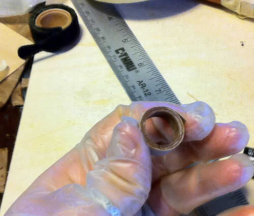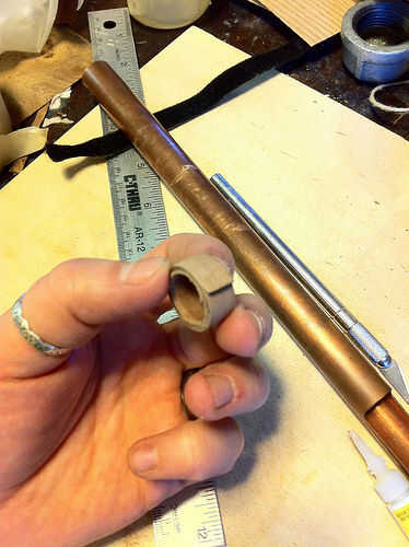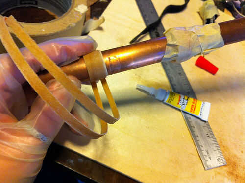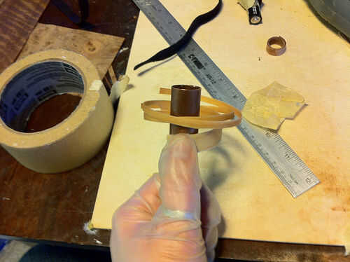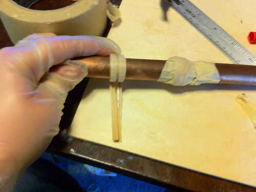 Cuando el anillo se pega, deslice el tubo y dejar sentarse a secar. Tiene que estar completamente seco antes de empezar a lijar. Esto puede tomar varias horas.