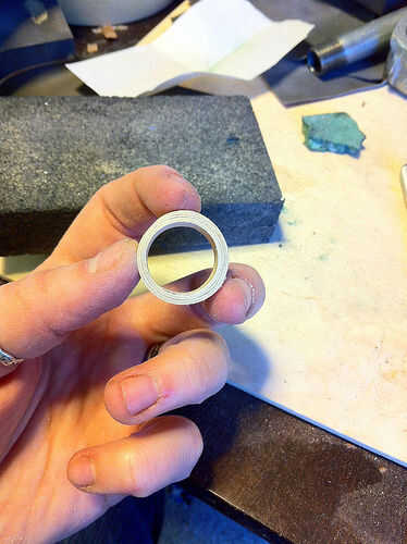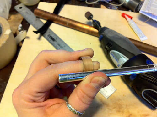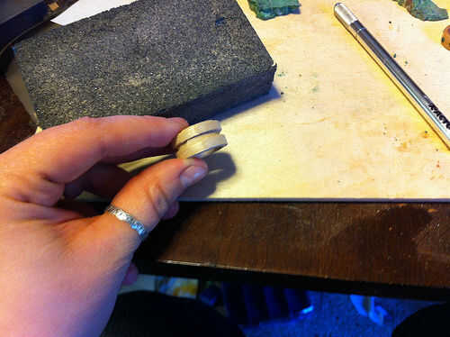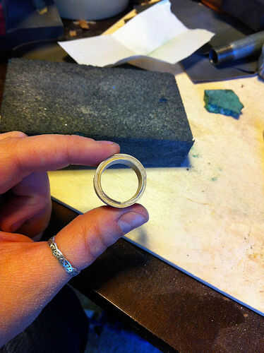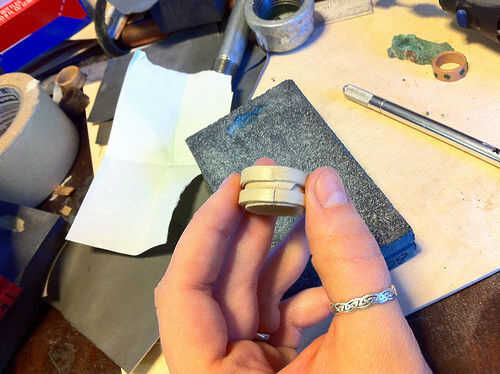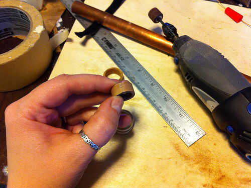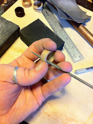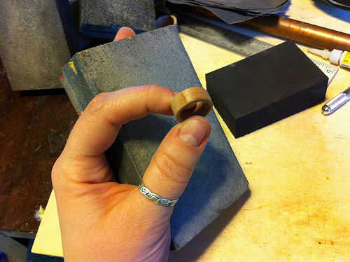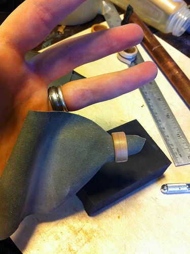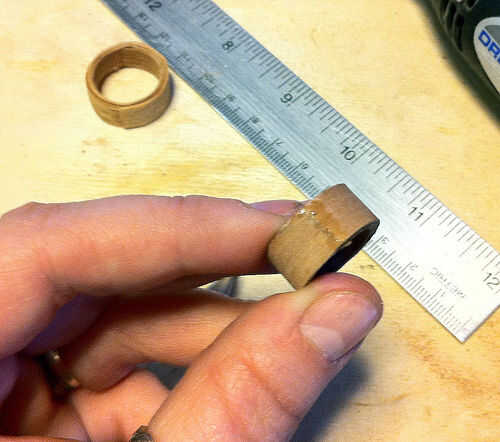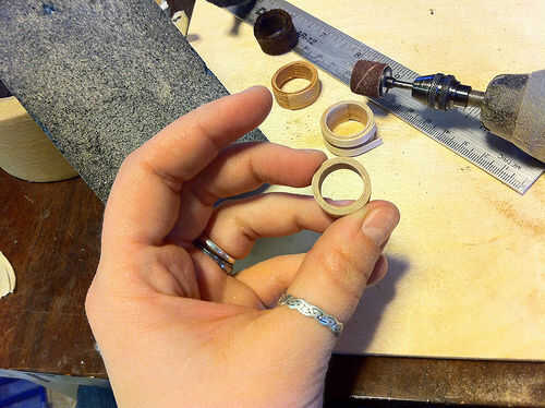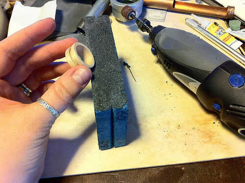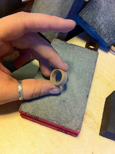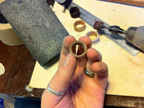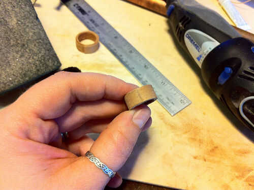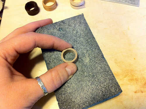 Yo uso la dremel para suavizar los bordes del anillo. Incluso cuando Envuelva cuidadosamente la madera, los bordes no están perfectamente alineados. Yo no soy un tipo perfectamente preciso de persona. No uso la dremel para lijar el resto del anillo. Soy probablemente, pero termino con un anillo de protuberancias si uso la dremel en el resto de ella.