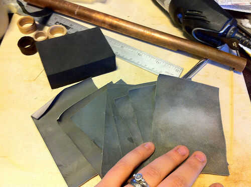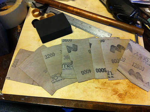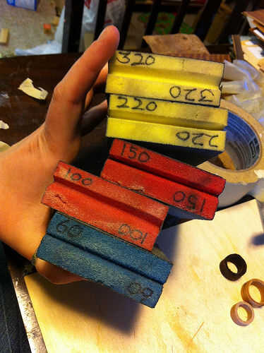Lijado adecuado hará una enorme diferencia en el acabado del anillo. Utilizar una amplia gama de granos de lija y no saltarse ninguna. Utilice bloques de lijado de grano 60 a 320, luego cambiar a mi lija micro malla. La malla micro realmente cuestiones si quieres un liso, brillante acabado. Sólo necesita de la arena hasta el grano 4000 en la malla micro antes de terminar. Lijado más allá de no es necesario. El acabado tiene un poco de aspereza para agarrar a, y que va a utilizar los granos superiores a la arena el acabado, de todos modos.