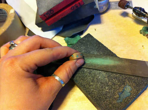 Tomaría para siempre a la arena la mezcla piedra sobrante con papel de lija, sobre todo si utilizas los tipos con un grano menos durable. Usa un archivo grande de metal para obtener la mayor parte del, entonces había refinado con papel de lija.
