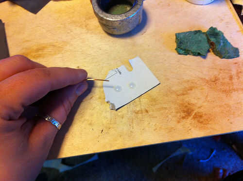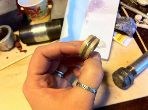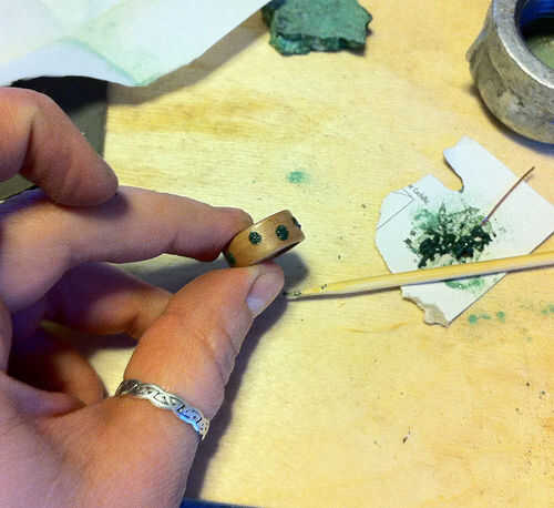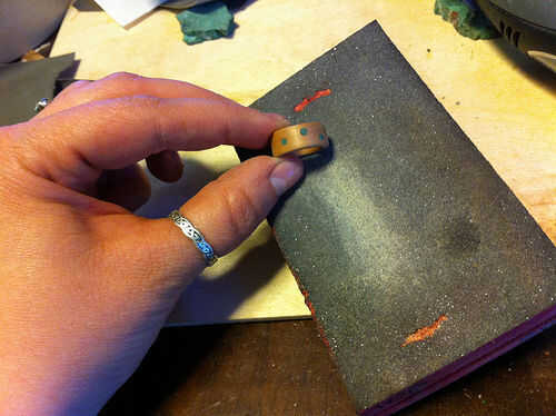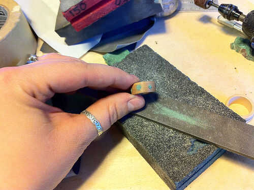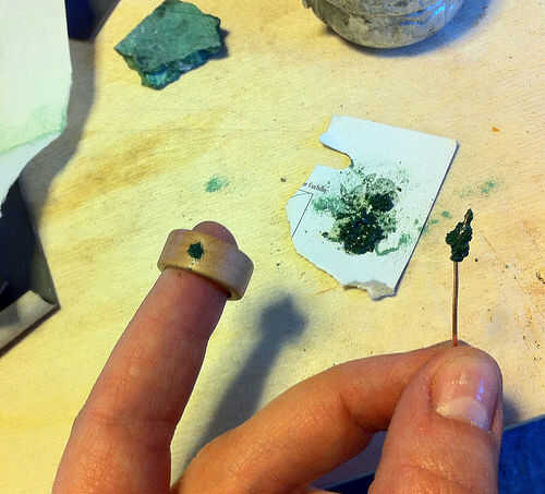 Si quieres puntos de la piedra machacada en su anillo, un poco de pulido en un taladro o dremel y agujeros del taladro en su anillo. No perfore todo el camino; hacer cavidades que puede rellenar con piedra machacada.