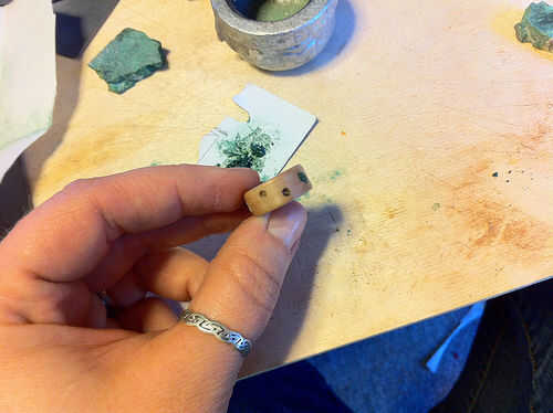 Compramos unas piedras baratas en varios colores en la tienda de rock local. Ninguno de ellos cuesta más de un dólar.