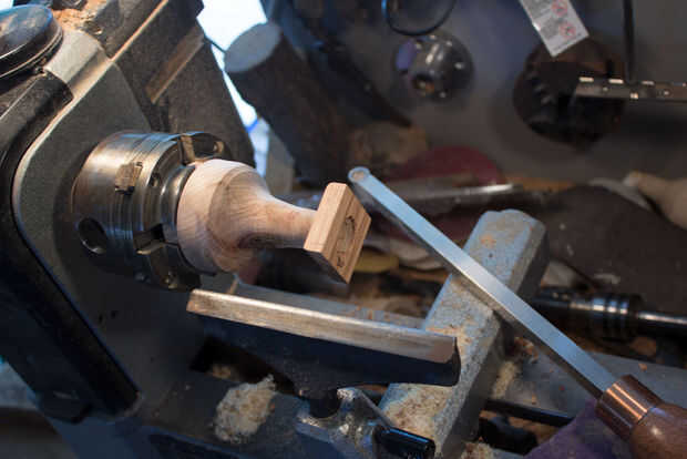 Si usted empuja el anillo en blanco en demasiado, corres el riesgo de partir la madera. Si usted va demasiado suelto, que corre el riesgo de la pieza viene de así ir un poco en el lado más flojo. Aquí está un pequeño Consejo: Si haces el eje lo suficiente, el anillo blanco simplemente aflojarse y spin descuidadamente. simplemente apague su torno y volver a la ajustados al huso y vuelva a intentarlo.