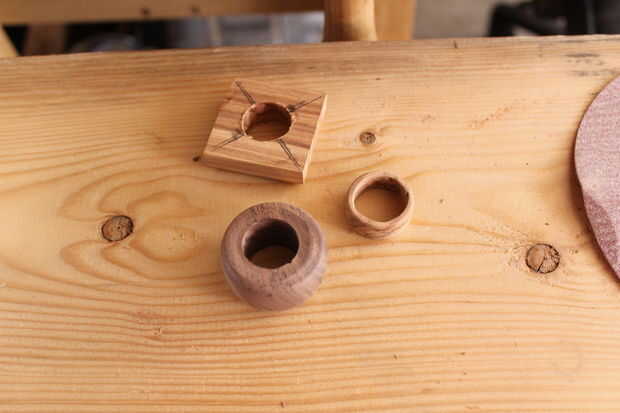 Aquí, una buena Idea es hacer un partido de juego de anillos con una pieza sólida de madera. Después de recibir su acabado alisado, parte simplemente cualquier forma que desee. El grano coincidirá con cada anillo dando un valor algo más sentimental o "anillos de amistad".
