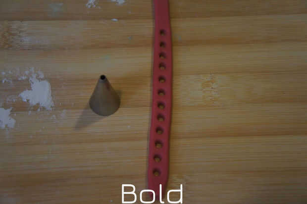 2) usando el Wilton 5 punta (círculo) hacen pequeños agujeros a través de la tira dando igual espaciamiento entre los orificios.