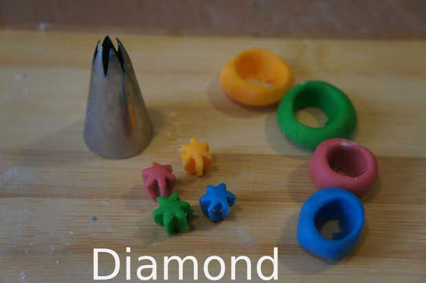 3) Quite el fondant que se están pegando fuera de la punta y Extraiga lentamente el diamante en forma de pasta de azúcar desde dentro de la punta